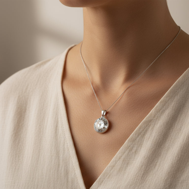 Collar de Cuarzo Cristal Facetado Redondo en calidad AAA - Claridad Perfecta.