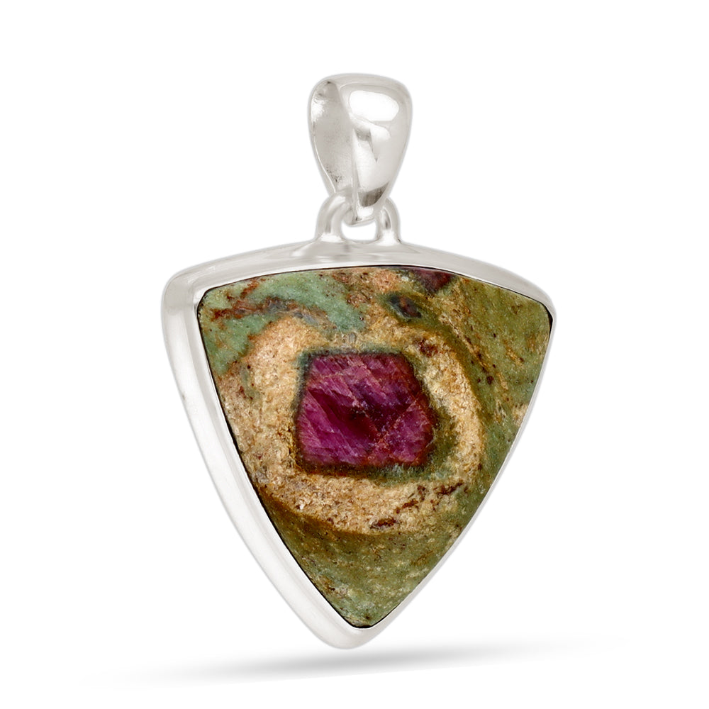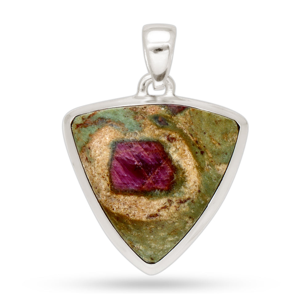 Vibrante Rubí en Fucsita. Corte de Cabujón Triangular.