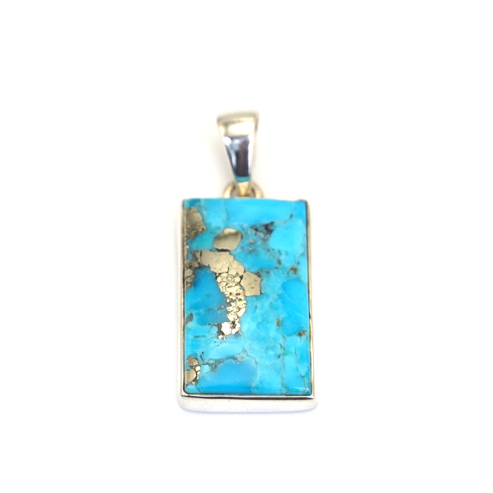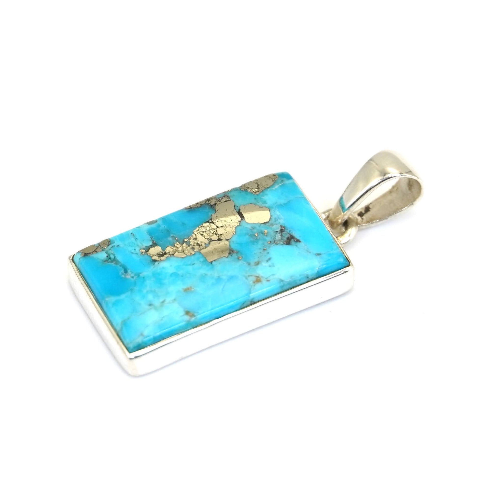 Collar de Turquesa con Pirita de Irán. Pieza en corte de cabujón Rectangular.