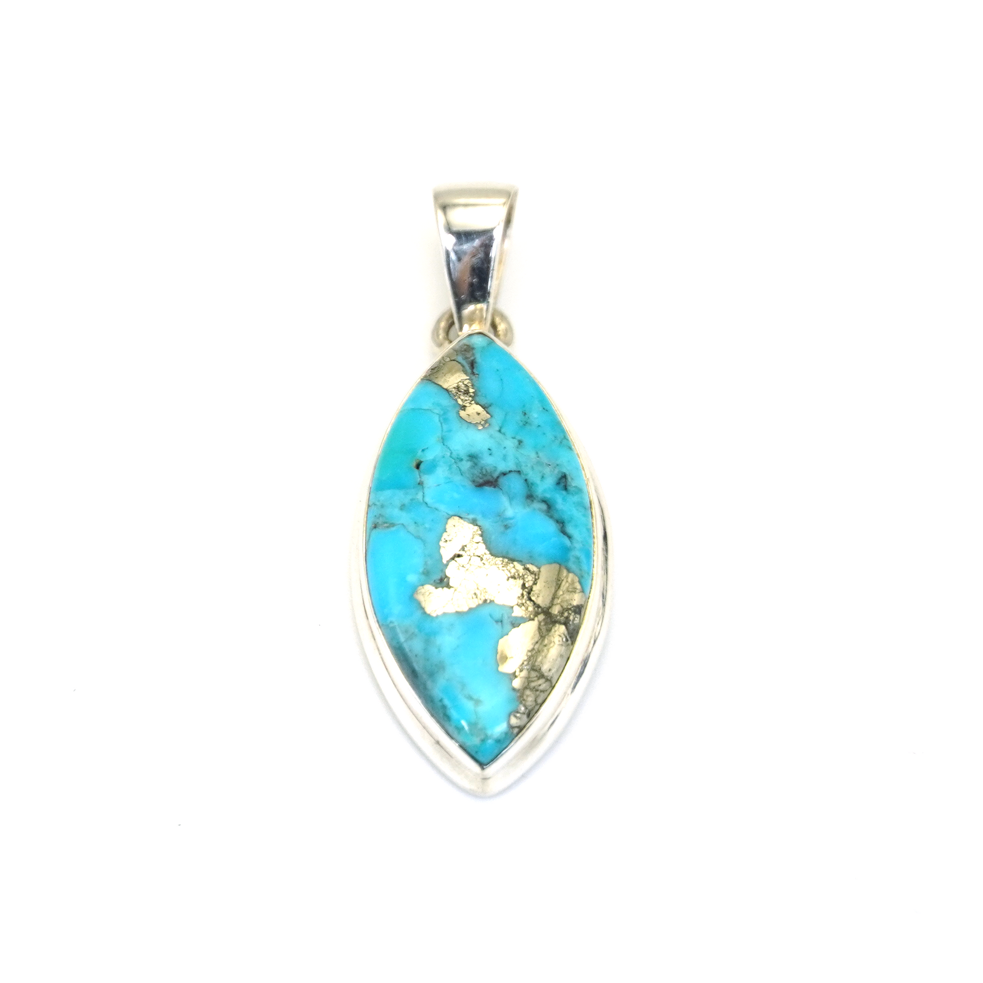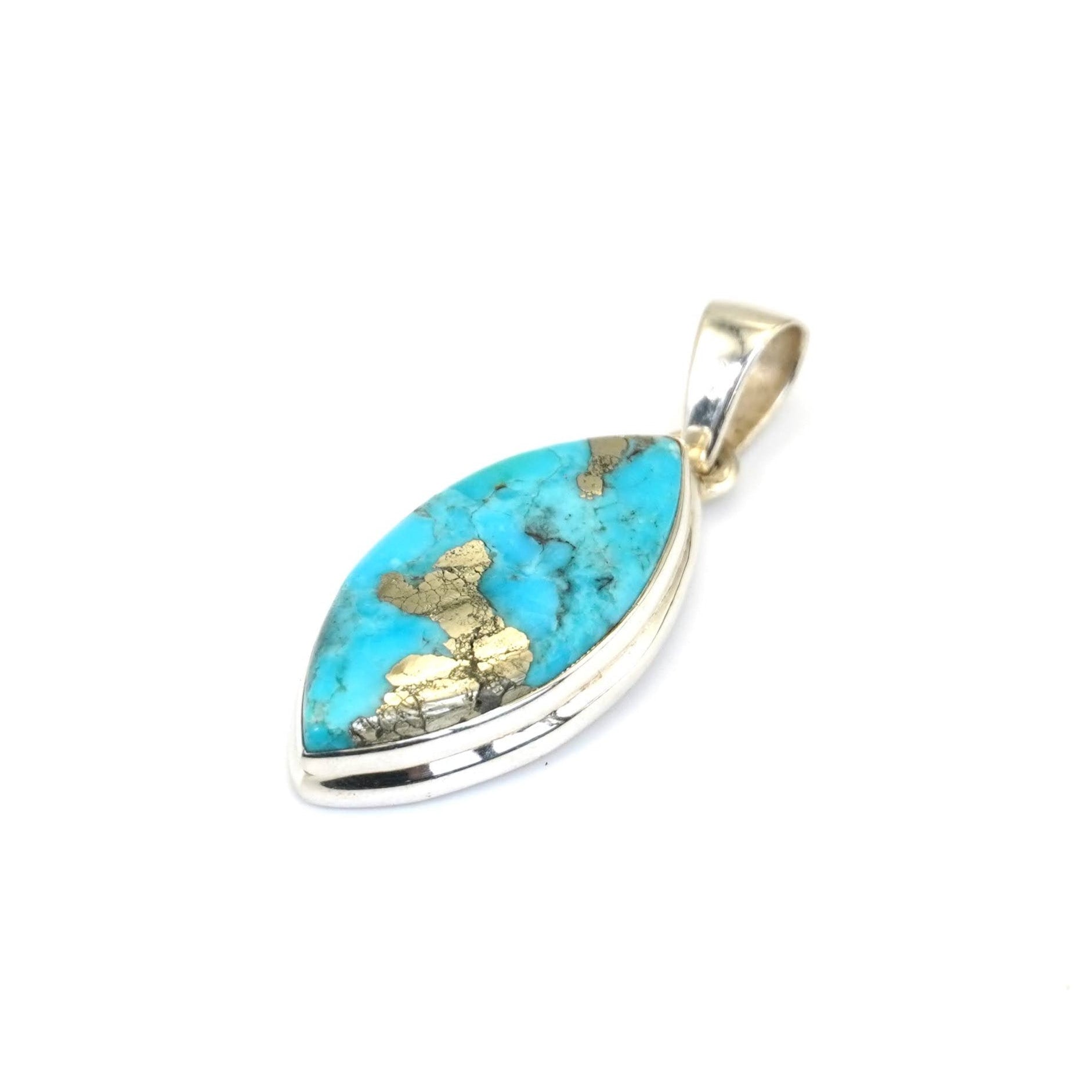 Collar de Turquesa con Pirita de Irán. Pieza en Corte de Cabujón Marquis o Rombo.